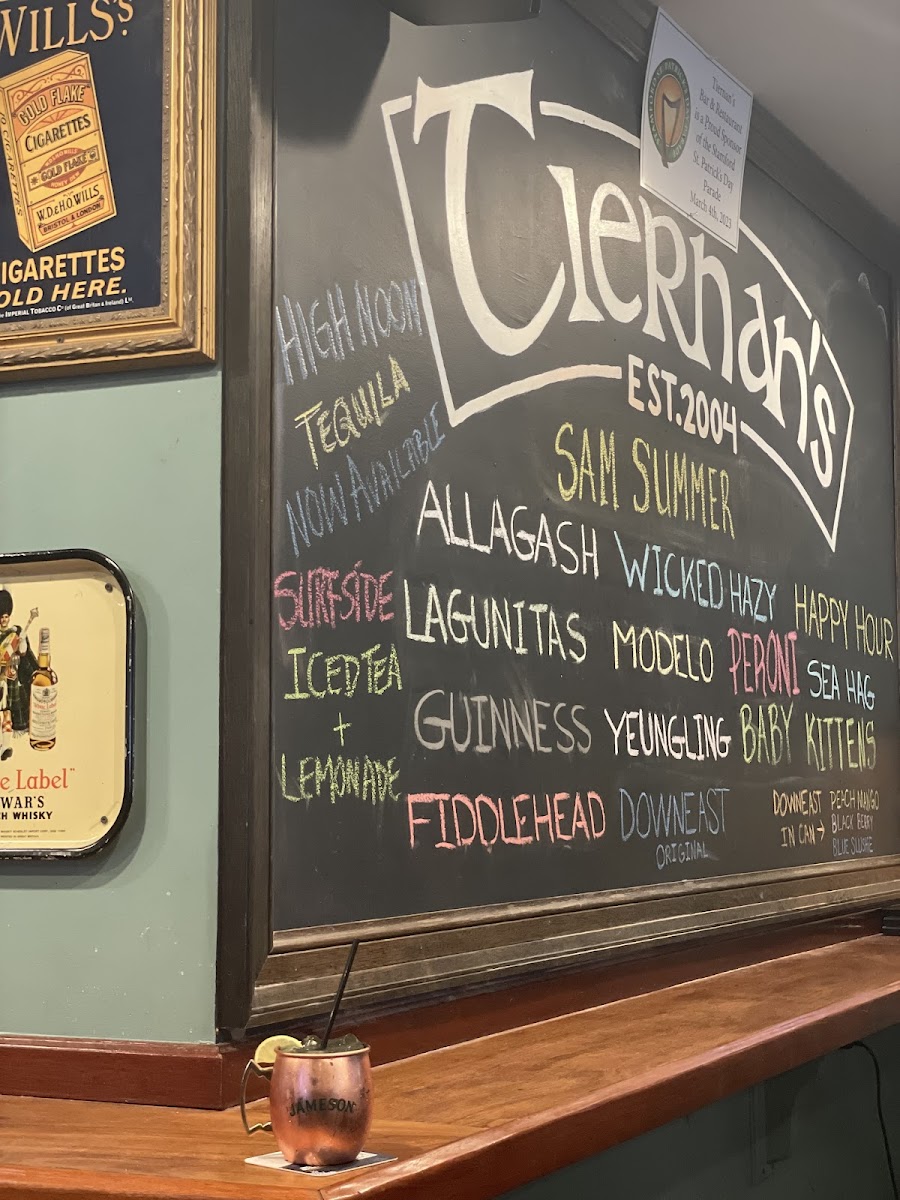 “ Tiernan's is a bar that blends their Irish heritage with modern American flair. The food is good, and the bar remains one of the few that decorates for the holidays, which is a nice touch. The staff are polite, and the bar has a spacious lounge area in the corner for groups of friends. Trivia nights are always a good time! ”